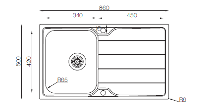Lines Series - Single Bowl Sink - LN 860.500 - 860mm x 500mm