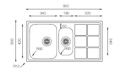 Lotus Series - Double Bowls Sink - LT 950.500.15 - 950mm x 500mm